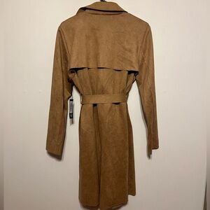 Elegant tan trench faux suede coat perfect for any occasion. Features a classic design with a stylish belt. Ideal for adding a touch of sophistication to your wardrobe. Reposhing because it’s too small for me. Never worn only tried on once.