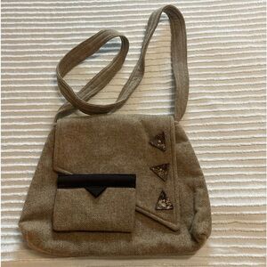 Tan Tweed Herringbone Bag/purse Envelope Fold With Matching Wallet NWOT
