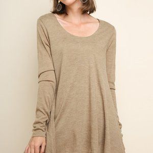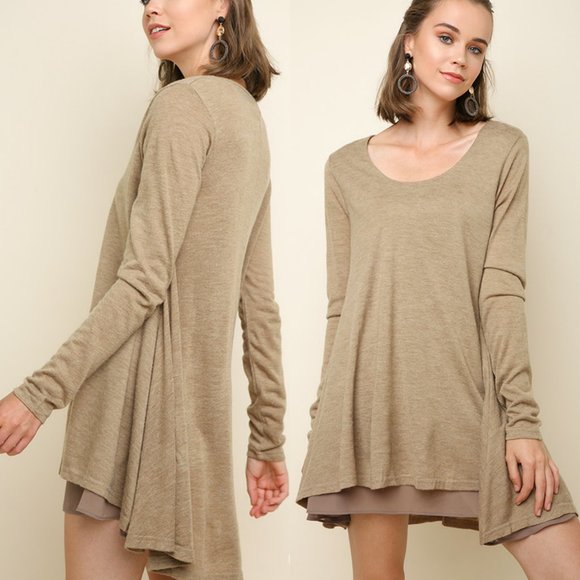 Tan Umgee Womens Dress Heathered Long Sleeve