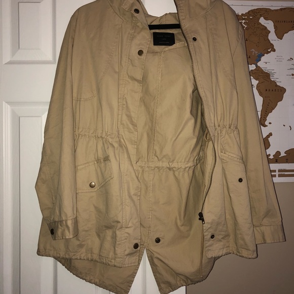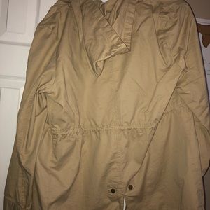 Tan jacket great for layering during the fall!! Fits comfortable and easy to dress up or down