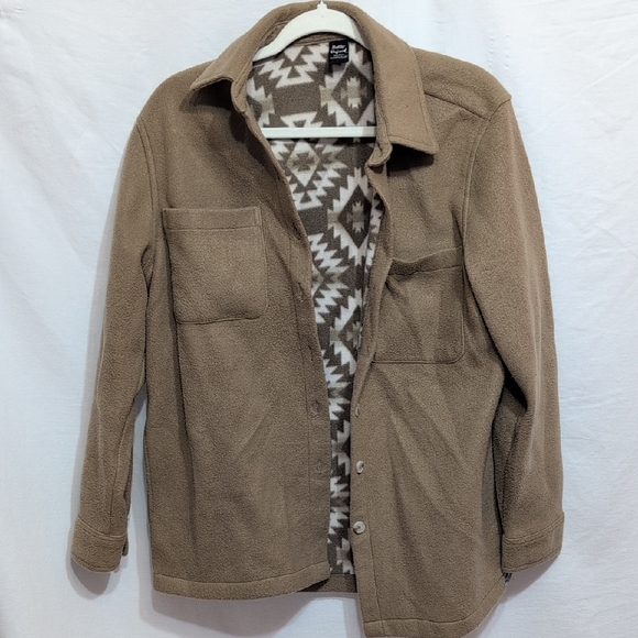 Stay stylish and comfortable with this tan utility jacket. Perfect for layering and versatile for any occasion.