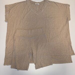 Comfortable and stylish 2 piece set. oversized top with matching biker shorts!! super cozy & perfect for throwing on, dressing up or down or just lounging. color oatmeal
