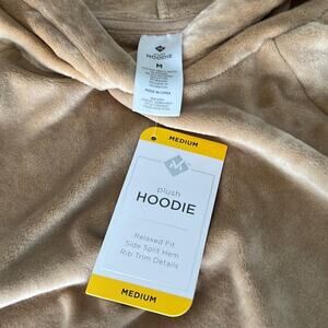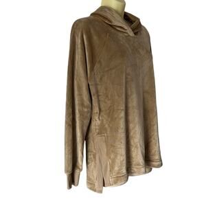Tan Velour Plush Hooded Pullover Top Woman Size Medium NWT