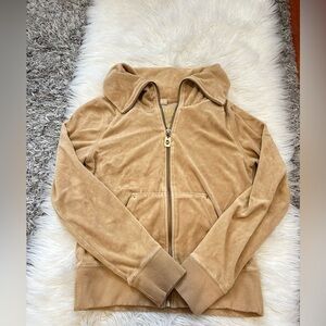 This stylish tan velour zip-up jacket is perfect for any occasion. The soft, luxurious fabric feels great against your skin, while the classic design makes it a versatile piece that can be dressed up or down. Whether you're running errands or heading out for a night on the town, this jacket will keep you looking and feeling your best.