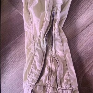 These gently worn Free People Scrapitdog Vintage cream/tan cargo joggers are low-rise with bold stitching . Super cute ! Even cuter on !!! Rare find l extremely comfy too !!!! 8 pockets and drawstring and zipper detail at ankle . Size 6