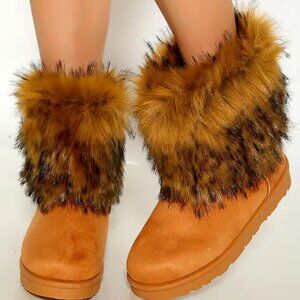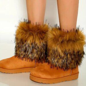 Tan Warm Faux Fur Cozy Bootie