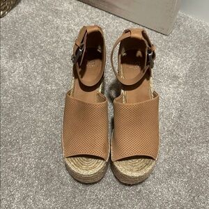 Tan Wedge Sandals with Ankle Strap