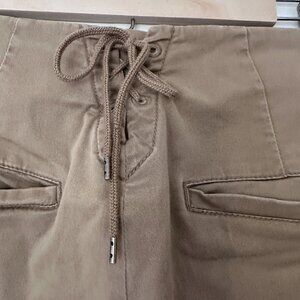 These are awesome, wide-legged, ankle-length pants with a tie detail in the back, which reminds me of Y2K! Awesome quality.