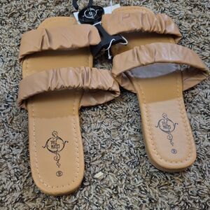 Tan Women's Double Strap Faux Leather Sandals sz 9
