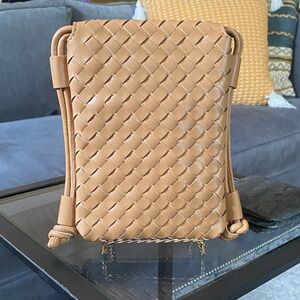 Tan Woven Faux Leather Crossbody Bag. NWOT
