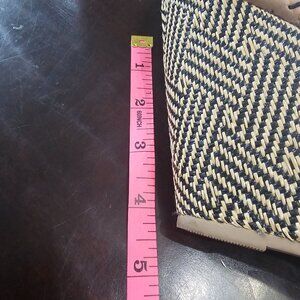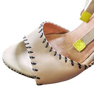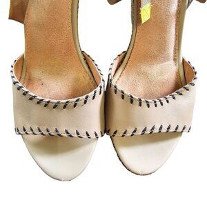 Tan Woven Wedge Heels With Ankle Tie Strap & Black Stitch Detail Womens Size 8.5