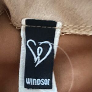 Step out in style with this tan mini skirt from Windsor, designed with a chic wrap and ruched detailing. Perfect for cocktail occasions, its form-fitting silhouette and elegant texture add a touch of sophistication to your evening ensemble.