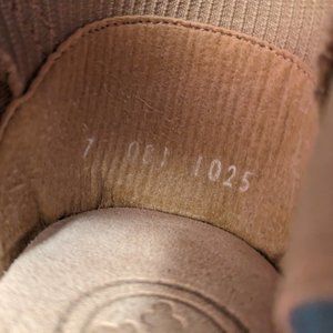I believe these are a 7, based on the print on the inside of the shoe (see photo), and they fit like a 7.