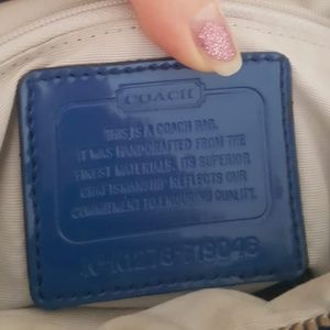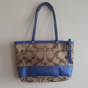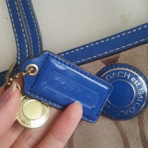Tan and Blue Coach Bag. Canvas bag in great condition! There is some staining on the inside of the bad (last 2 pics).