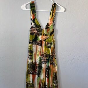 Tan and Green Halter Sundress for Resort Wear