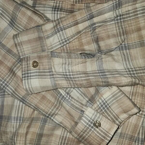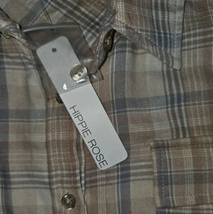 Tan and Grey Soft Crop Plaid Button Down Shirt Size Large NWT Brand hippie rose