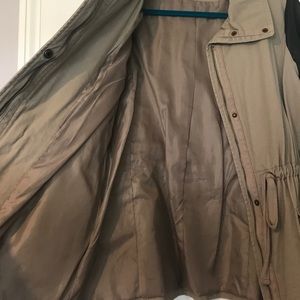 olive and oak jacket. Like new. Zippers on sleeve and inner lining.