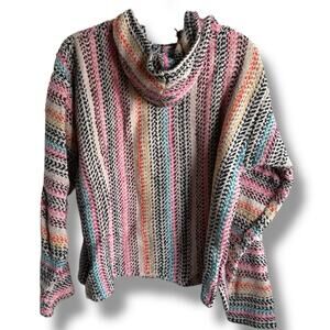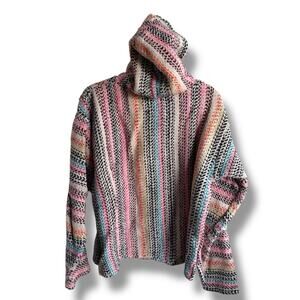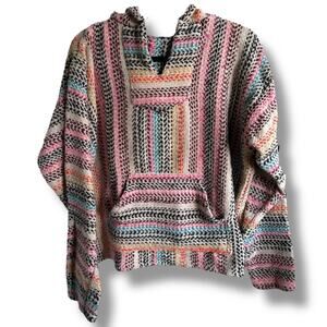 Tan and Pink Striped Sweatshirt Baja Style Mexican Poncho Hoodie Drug Rug