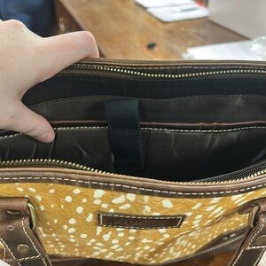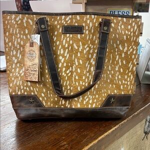 Stylish and durable, this tote bag features a unique brown and tan deer print design. Perfect for everyday use.