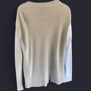beige v-neck, cotton blend, Hollister sweater, casual knit, neutral tones, soft fabric, button front, layered look, cozy cardigan, California style