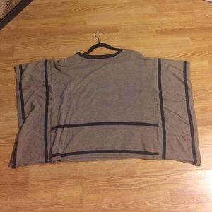 Tan with black trim poncho style sweater. 54% cotton 24% acrylic 22% viscose