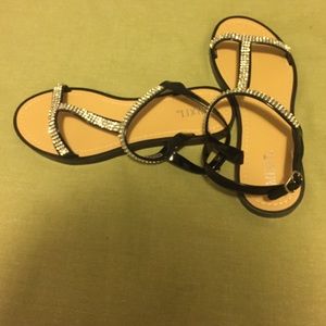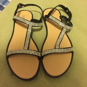 Tan and black sandals