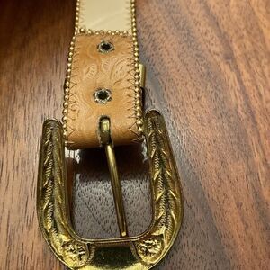 Tan and gold Floral Studded tone belt and buckle size 31”
