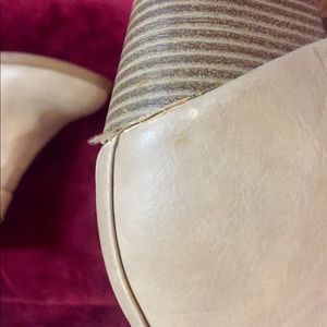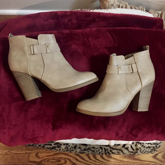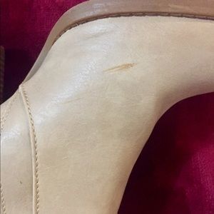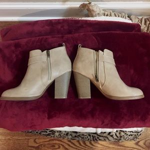 Light tan booties. Size 8. Small scuff marks on the right shoe are shown. Perfect for fall!