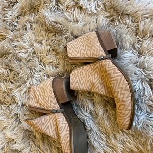 Tan zig zag pattern booties. 1.5” heel. Size 9.5. Zippers on both sides.