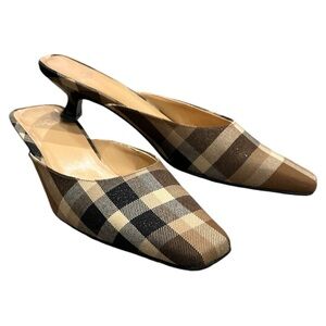 Tan brown black plaid mule 1 3/4” heel high vamp snipped toe 7.5 Anne Klein 2