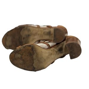 Tan brown leather gladiator multi strap chunky 3” heels tan sandals Sz 8