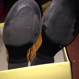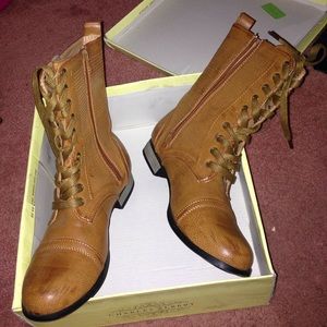 Tan (orangey tan) distressed look combat boots. Worn once too big on me! Size 9