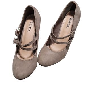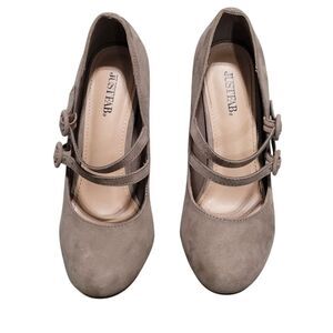 #neutral #faux suede #dressy #work #block heel #8.5 #8 1/2 #women #heel #tan #khaki #strappy #double strap #Mary Jane #man made #buckle #retro #classic #staple #women #heels #block heel #JustFab #sale #bundle