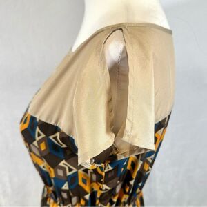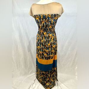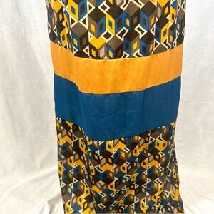 Tan gold and teal geometric print color block cotton blend maxi dress size small