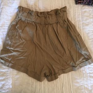 Tan high waisted shorts. (They are obviously wrinkled in this picture)