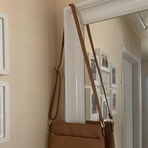 Tan hobo strap bag with compartments and zips. Used twice. Perfect for a night out with girlfriends or a concert. This lucky bag went to Taylor Swift with my daughter and Justin Timberlake with girlfriends. In great condition and ready for a new home.