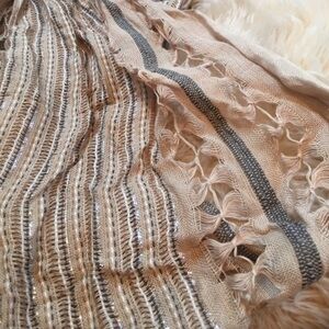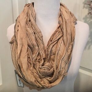 This is a beauty! Infinity scarf with tans and browns and a lil silver thread running through it. Brand new.