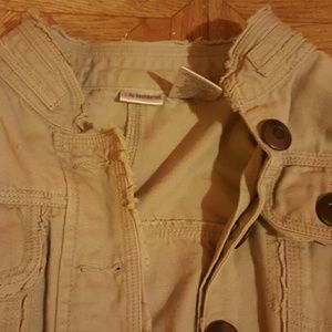 Large no boundaries tan jacket. Super cute just never wear it, nothing wrong with it at all no holes or missing buttons