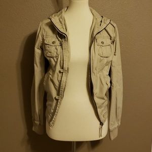 A light jacket with pockets. Scrunches for a tighter fit at the bottom