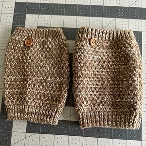 Tan knitted boot cuffs with button. In great condition with no rips, stains, or loose threads.