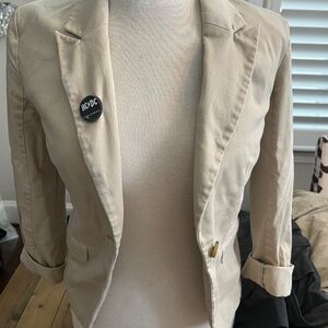 Tan ladies blazer with AC/DC patch on the back XS