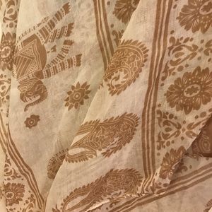 This scarf/sweater is a lightweight summery piece from California. I bought it but have never worn it so it is in great condition! The design features many cute little doodles, flowers, as well as elephants and this is a one size piece.