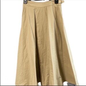 Tan midi skirt with front lace up bows and side belt detail. Size small.