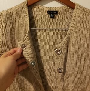 Medium weight cardigan like jacket. Has 2 snaps to close. Fits like a petite medium