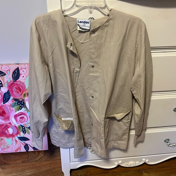 Tan scrub jacket for sale! Has buttons to close! If you make a bundle with some of the other scrub jackets posted, I will decrease the price to give you a deal!