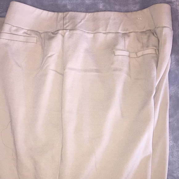 Tall tan pants, creased front, straight leg, elastic waist, worn once