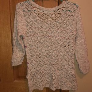 Tan sweater with pink and maroon stripes