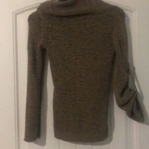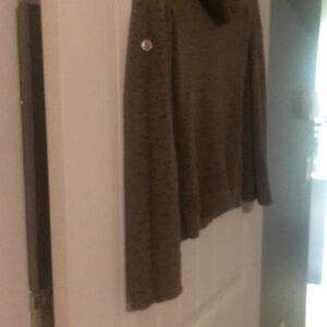 Tan sweater, looking sleeve, can be pulled up with bottom on side. Saks Fifth Avenue