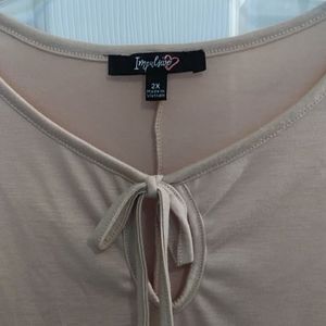 Soft tan top with tie neckline. Overlap cap sleeves. Size says 2X, but fits more like XL. Rayon/spandex, hand wash.