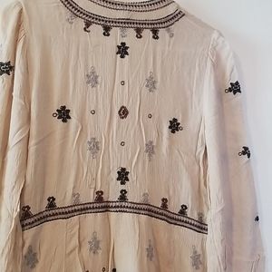 Free people. Clasps at the front to keep cleavage covered. 3-Quarter length sleeves. Full liner. Some minor pulls on the embroidered details. Make an offer